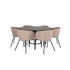 Venture Home Copenhagen Matgrupp 140 cm Rund med 6 Velvet stolar Beige Matgrupper Beige,Svart