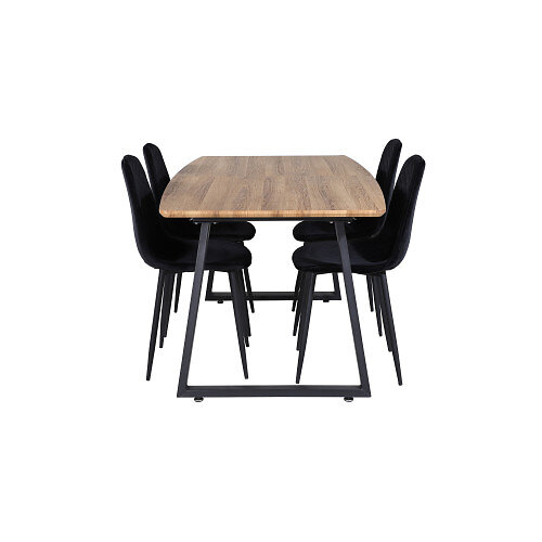 Venture Home Matgrupp Ina med 4 Pobbie Stolar Polyestertyg Inca Extentiontable -grå"oak"/Polar Chair Black Fabric_4 GR20320