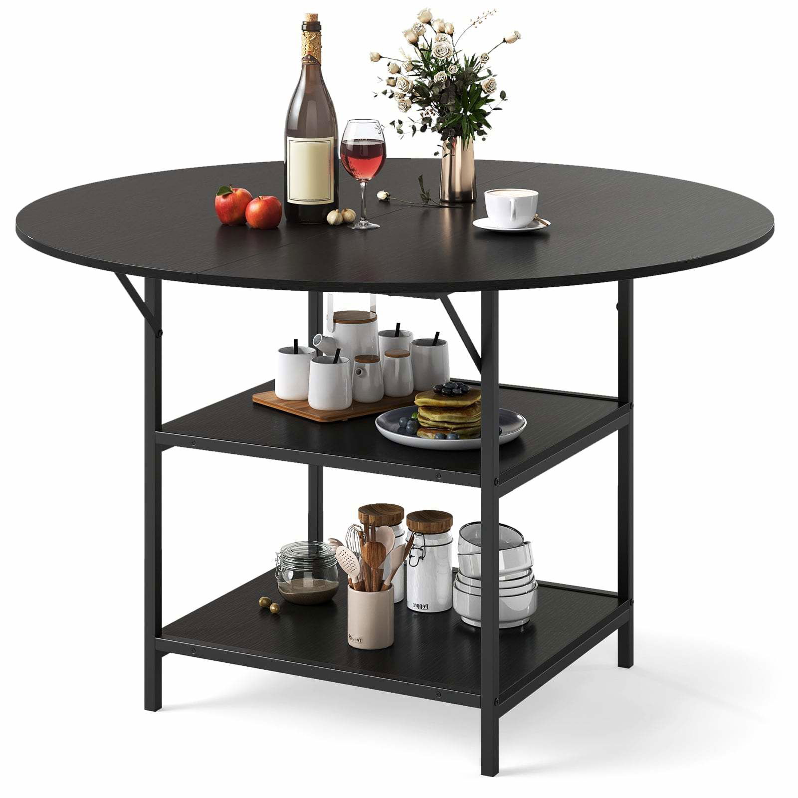 Runt matbord för 4-6 personer, förvaring i 2 nivåer, metallram