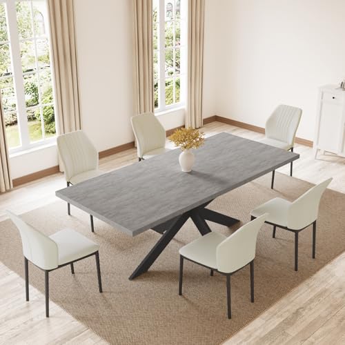 JIEXI Matgrupper för 4–6 personer, utdragbart matbord med stolar, modernt grått MDF-träbord, lämpligt för vardagsrum, kök, möten med många personer (130–170 cm bord 6 beige stolar)