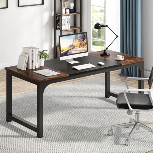 Tribesigns Modernt datorbord, 180 x 80 cm stort skrivbord, kontorsbord, matbord i svart och brunt för hemmakontoret, svart metallram