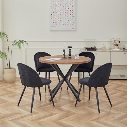 FURNITABLE Matbord | Runt köksbord | Modernt set med matsalsstolar | Skandinaviskt runt bord svart bord med 4 svarta stolar