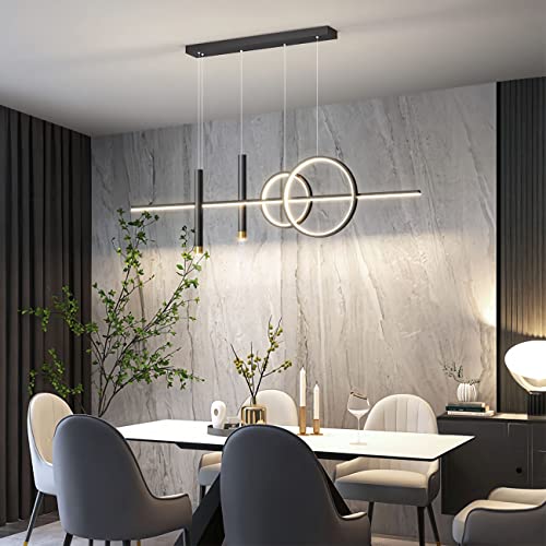 Modernt LED Hängande Lampor Matbord Pendel Lampa Dimbar Med Fjärrkontroll Matrum Hängande Lampa Höjdjusterbar Ljuskrona För Vardagsrum Kontor Hängande ljusarmatur (svart, 120CM)
