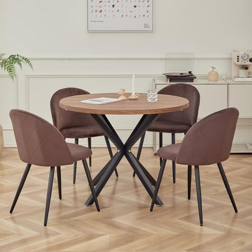 DEYARNA HOME Matgrupp set bord och stolar, matbord och 4 stolar, sammetsmatstolar, bordsskiva av MDF, svarta bordsben, modernt köksbordsset (mörk träfärg/brun, 100 x 100 x 76,5 cm)