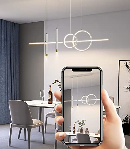 Modernt LED Hängande Lampor Matbord Pendel Lampa Dimbar Med Fjärrkontroll Matrum Hängande Lampa Höjdjusterbar Ljuskrona För Vardagsrum Kontor Hängande ljusarmatur (vit, 100CM)