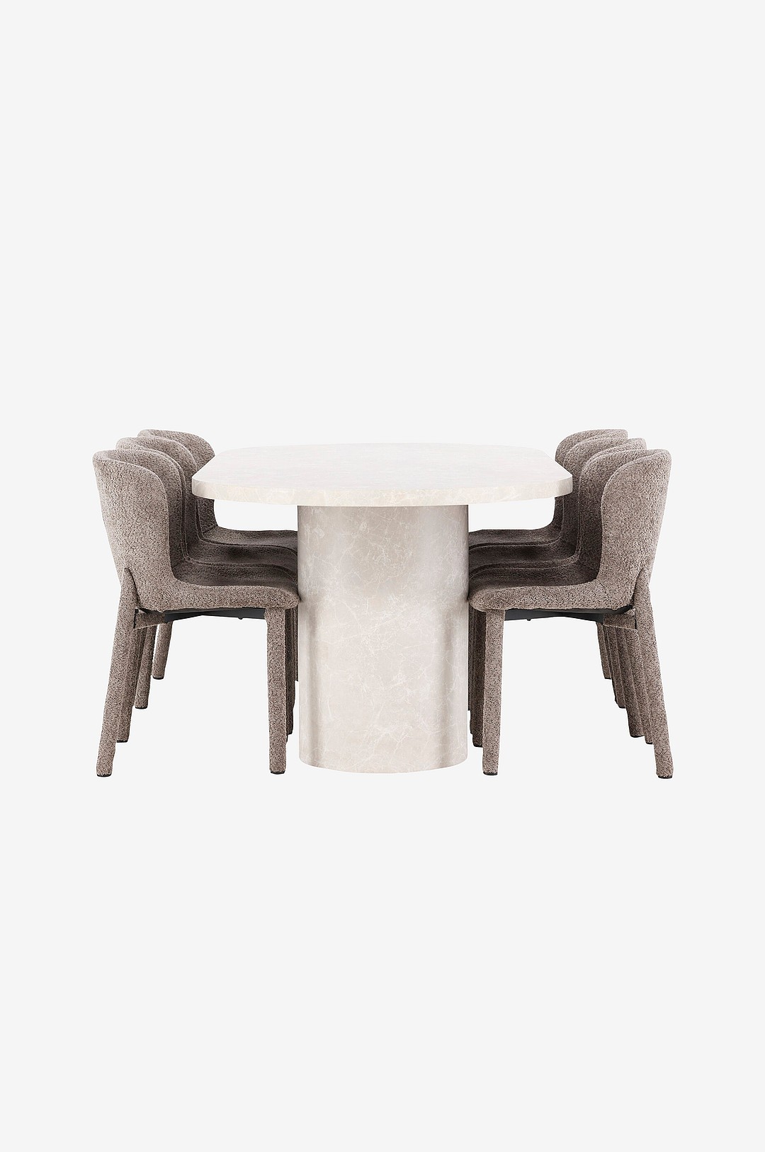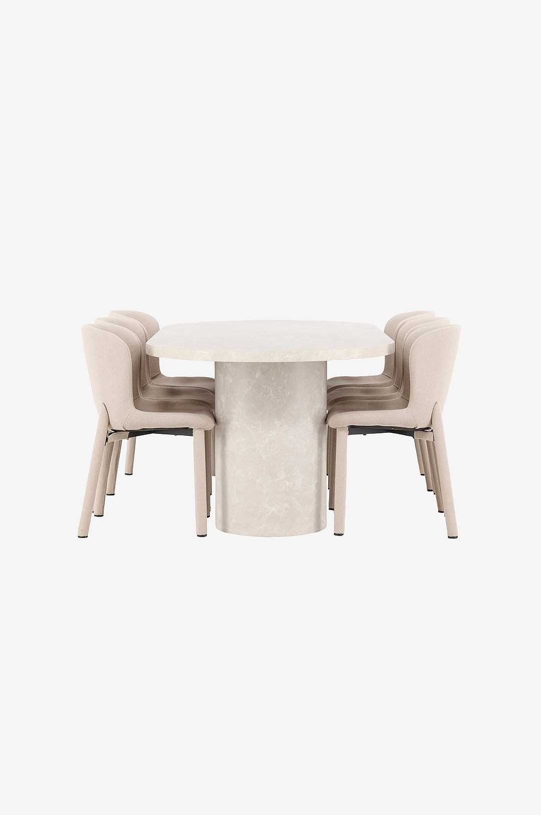 Venture Home - Matbord Narvik med Astoria-stol - Beige - Matgrupp 6 personer - Från Homeroom