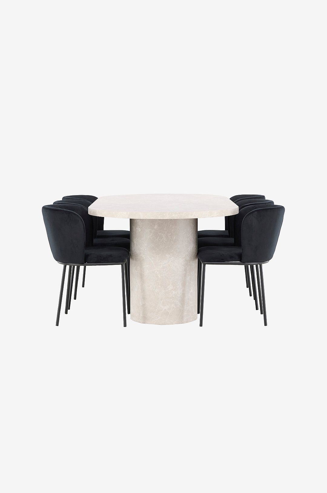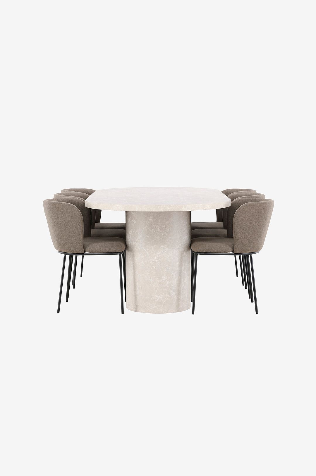 Venture Home - Matbord Narvik med stol Night - Beige - Matgrupp 6 personer - Från Homeroom