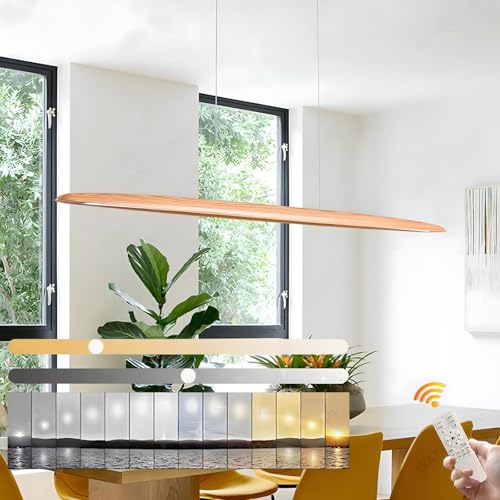 YYUTLUO LED Pendellampa I Trä Matbordslampa, Dimbar Med Fjärrkontroll Pendellampa, Höjdjusterbar, Modern Linjär Design Vardagsrumslampa Hängande För Kontorsmatsal (130cm)