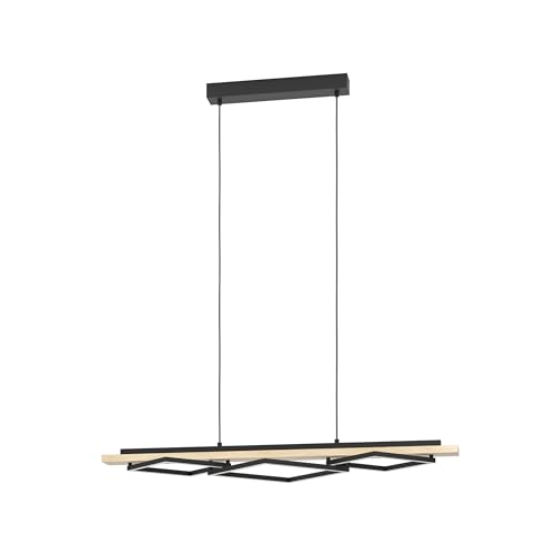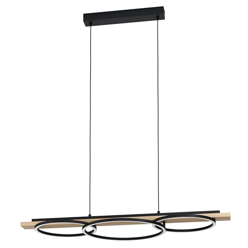 EGLO Boyal hängande LED-lampa, matbords-pendellampa med 3 lampor, i ljust trä och svart metall, FSC-certifierad matbordslampa, varmvitt ljus