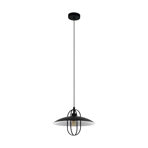 EGLO Pendellampa Cregan, 1 flamlig hänglampa vintage, industriell, retro, hänglampa av stål, matbordslampa, vardagsrumslampa hängande i svart, vit, E27 fattning