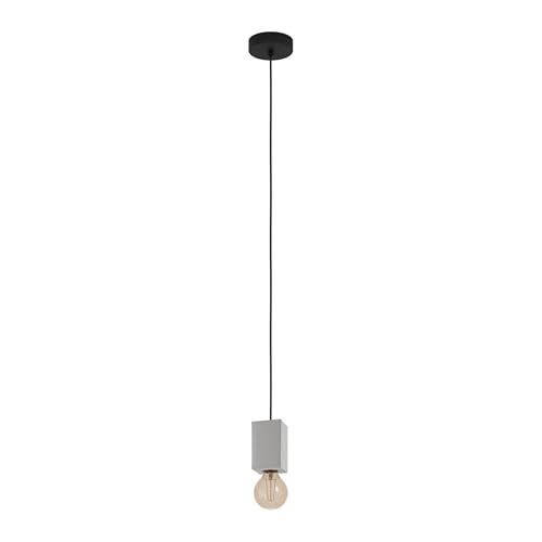EGLO hängande lampa Prestwick 3, 1-glödlampa pendelbelysning industriell, belysning av betong i grått och metall i svart, matbordslampa, vardagsrumslampa hängande, E27-uttag