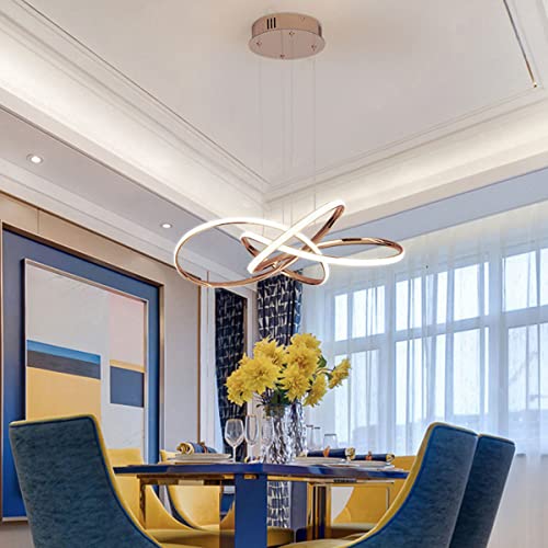 LED Hängande lampa Matbord Dimbar Hängande belysning Modern matsalslampa med fjärrkontroll Vågform Höjdjusterbar ljuskrona Matbordslampa Kontorskök Vardagsrumslampa (Guld)
