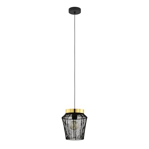 EGLO hängande lampa Escandidos, 1-glödlampor pendelbelysning, bordsbelysning av metall i svart, mässing borstad, matbordslampa, vardagsrumslampa med E27-uttag