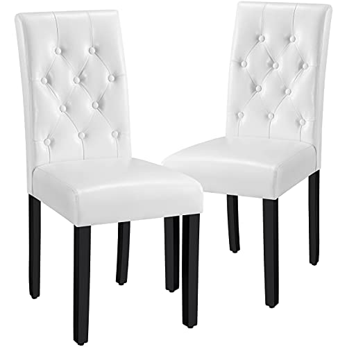 Yaheetech Matbordsstolar set om 2 köksstol stoppningsstol med högt ryggstöd, ben i massivt trä, vadderad sits av konstläder vit