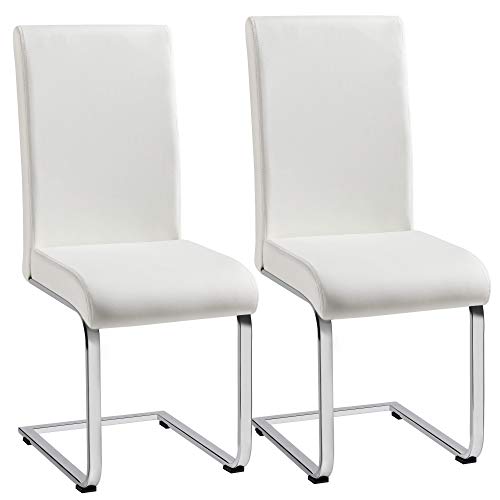 Yaheetech Set med 2 matbordsstolar, köksstol, svängstol, matgrupp, med högt ryggstöd, bekvämt vadderad, rostfritt stål och konstläder, vit
