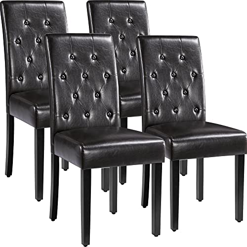 Yaheetech 4 x matbordsstolar köksstol stoppningsstol med högt ryggstöd, ben av massivt trä, stoppad sits av konstläder brun