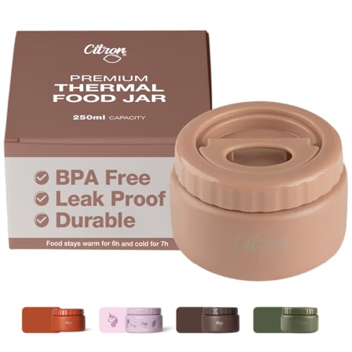 Citronisolerad matburk i rostfritt stål – 250 ml/400 ml, dubbelvägg termisk flaska med vakuumtätning och lättlåssystem, läckagesäker, perfekt för varm eller kall mat för vuxna och barn, rodnande rosa