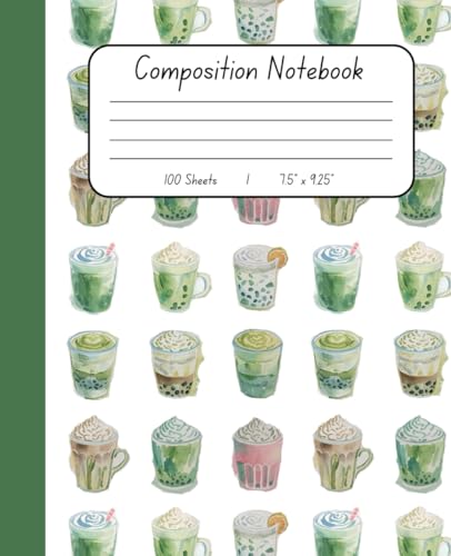 Iced Matcha Latte Composition Notebook – Cute Coffee & Tea Journal, 100 Pages, College Ruled, Perfect for Students, Writers, and Matcha Lovers