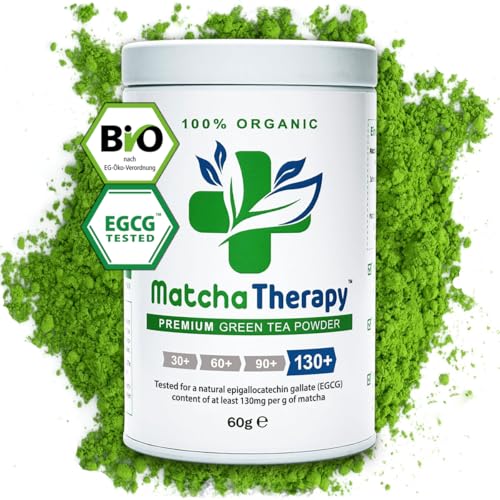 MatchaTherapy 130+ | EKOLOGISKT Matcha Te-pulver | 60g | Minst 130 mg/g testat EGCG-catechininnehåll | Stödjer immunsystem & energinivåer | Ceremoniell kvalitet | Grönt te från Japan