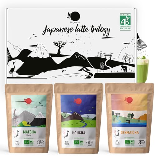 ORIGEENS KAFFET TE MATCHA LATTE - Pulver av : Ekologiskt Matcha, Hojicha, Genmaicha, 3 * 50g - Matcha
