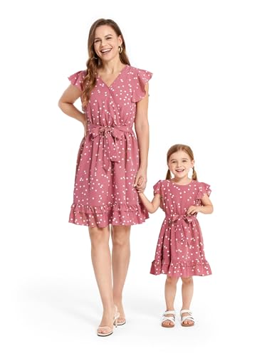 PATPAT Klänning till mamma, dotter, tröjset: prickig klänning med vida ärmar för perfekt familjematchande kläder, kläder för baby – flickor/kvinnor, Rosa och vit, M