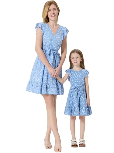 PATPAT Klänning till mamma, dotter, tröjset: prickig klänning med vida ärmar för perfekt familjematchande kläder, kläder för baby – flickor/kvinnor, Ljusblå, S