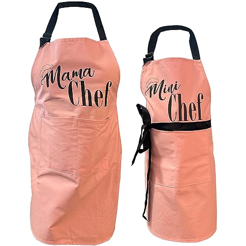 BASHOUT Mor, Dotter Förklädesset | (2 st) Mama Chef plus Mini Chef Matchande förkläden | Matlagning bakning justerbara mamma och barn rosa förkläden | mors dag, jul mamma och dotter köksförkläden,