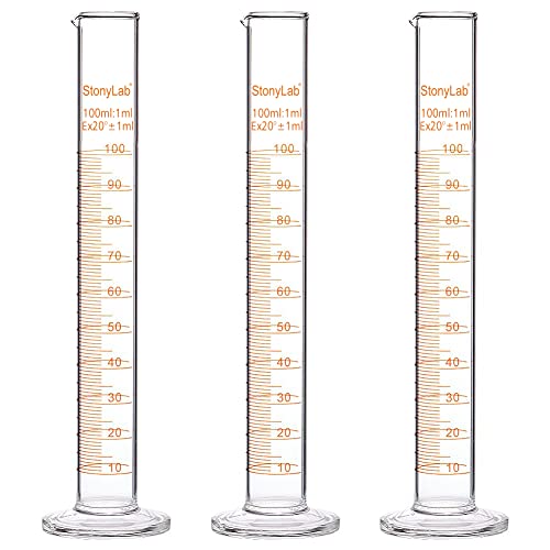 stonylab 3-Pack Kombinationspaket Borosilikatglas 100 ml Tung Vägg Graderad Cylinder Mätcylinder, 100 ml