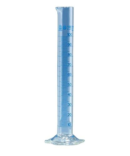 neoLab borosilikatglas mätcylinder, hög form, sexkantsfot, boro-klass B, transparent, 100 ml kapacitet