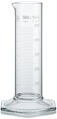 neoLab E-1281 mätcylinder, 500 ml, låg form, sexkantsfot, Boro Kl. B