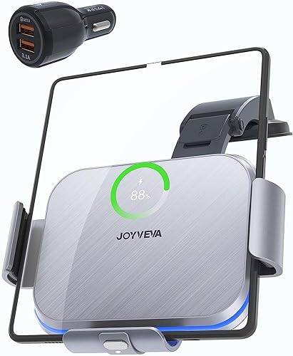 JOYVEVA Dubbel spole trådlös billaddare för Galaxy Z Fold 7/6/5/4/3/2/Mate XT, snabbladdande mobiltelefonhållare för Samsung Z Fold 3, landskap mobiltelefon bilfäste för Galaxy Z Fold (stålgrå)
