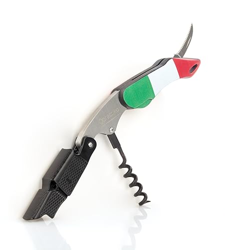 Qpractiko - Professionell två gånger korkskruv | Flagga Italien | Enkel öppning av någon typ av kork | Hem och professionell användning | Vinkorköppnare, Material: Rostfritt stål
