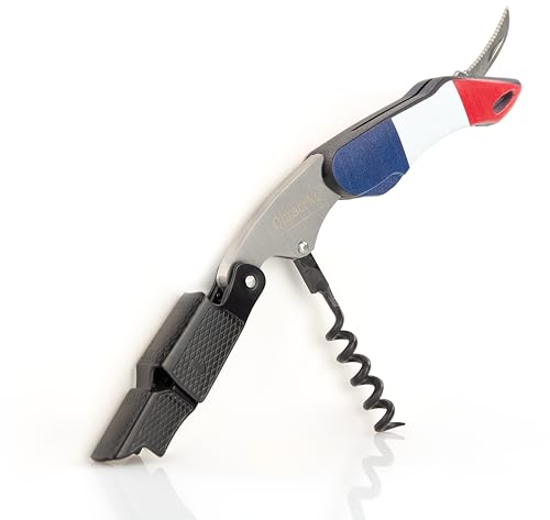 Qpractiko - Professionell två gånger korkskruv | Flagga Frankrike | Enkel öppning av någon typ av kork | Hem och professionell användning | Vinkorköppnare, Material: Rostfritt stål
