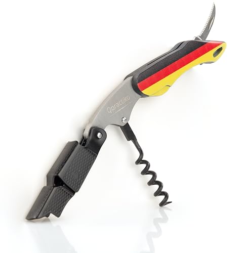 Qpractiko - Professionell två gånger korkskruv | Flagga Tyskland | Enkel öppning av någon typ av kork | Hem och professionell användning | Vinkorköppnare, Material: Rostfritt stål