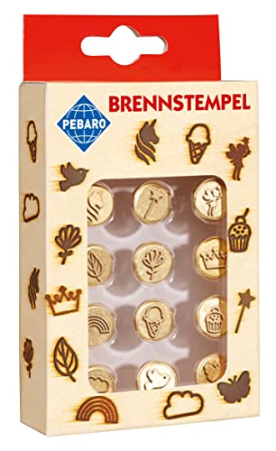 Pebaro 20700 brännstämpel för brandmålning, pyrografi, träbränningar, 12 delar, tillverkad av mässing – olika motiv som is, älvor, stjärna etc., för bränning på trä, läder, kork och andra material