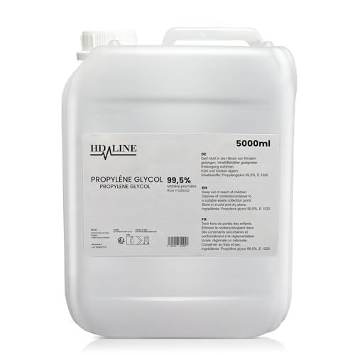 hd-line 5 000 ml propylenglykol E1520, perfekt för DIY, farmakvalitet 99,7% renhet, livsmedelskvalitet, raw material PG, ren, vegan, Ph. Eur/USP, 5 l