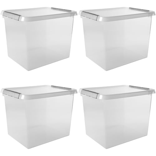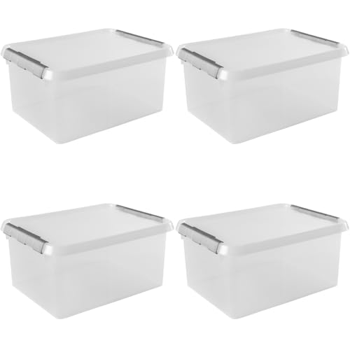 Sunware Comfort Line förvaringslåda 52 L - 50 x 40 x 38 cm - set med 4 - plastförvaringslåda med lock, lämplig för kläder, leksaker, gör-det-själv-material och mer