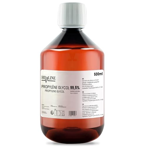 hd-line 500 ml propylenglykol E1520, perfekt för DIY, farmakvalitet 99,7% renhet, livsmedelskvalitet, raw material PG, ren, vegan, Ph. Eur/USP