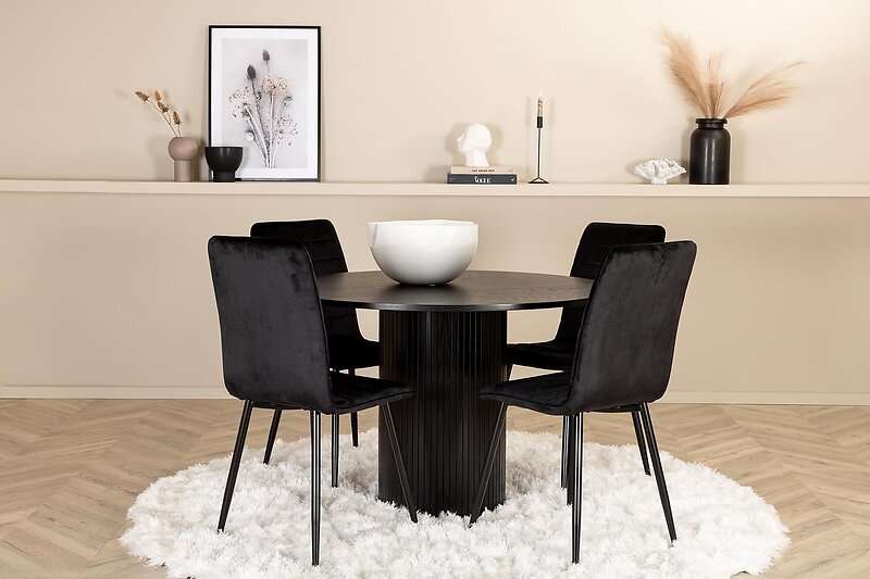 Bianca runt matbord med 4st Velvet matstol 15596-848_1+19925-855_4