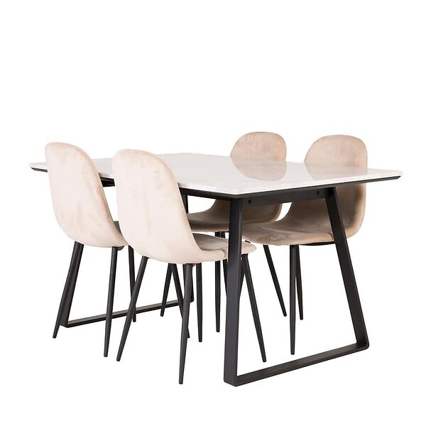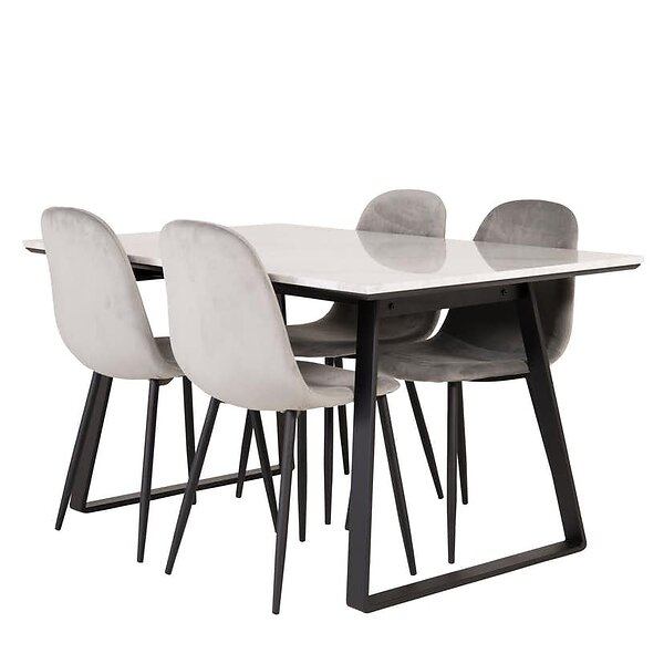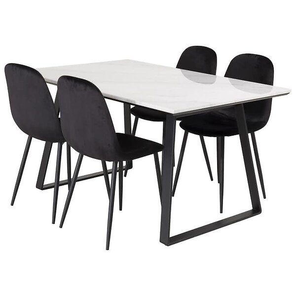 Venture Home Matgrupp Estelle med 4 Pobbie Stolar Sammet Dining Table 140*90 White Marble Black Legs+Pola GR19137