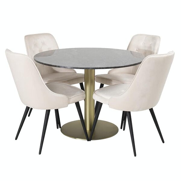 Venture Home Matgrupp Estelle Rund med 4 Pobbie Stolar Sammet runt Matbord Borstad Mässing Svart marmor ø106 GR19133