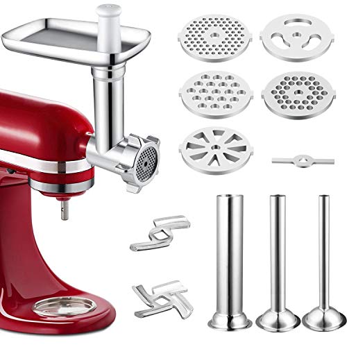 Gdrtwwh Metallfäste för matkvarn, kompatibel med alla KitchenAid köksmaskiner och PHISINIC köksmaskiner, inkluderar 3 korvfyllningsrör