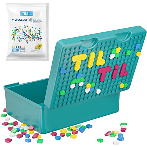 Wessper Matlåda för barn, lunchlåda med byggstenar, brödlåda för barn, personlig matlåda för dagis, BPA-fri dekorerad lunchlåda för skola, utflykter, turkos snackslåda