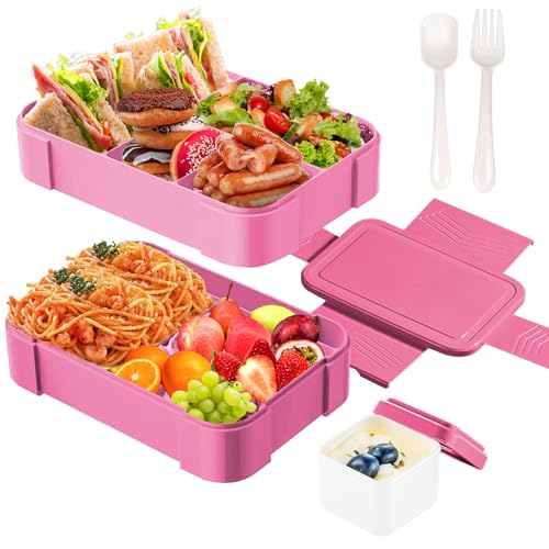 Amathley Lunchlåda Barn med Fack,Bentolåda för Barn,Matlåda för Vuxna,1300 ML Bentoboxar med 5 Fack och såsbehållare,Hållbar,Läckagesäker,Mikrovågsugnar och Diskmaskinssäker,BPA-fri (Rosa)