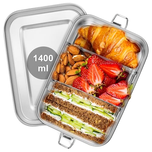 Joyfair Lunchlåda med fack, 1 400 ml rostfritt stål bentolåda med 2 avtagbara fack för vuxna och barn, matlåda för camping resor och arbete, läckagesäker och diskmaskinssäker
