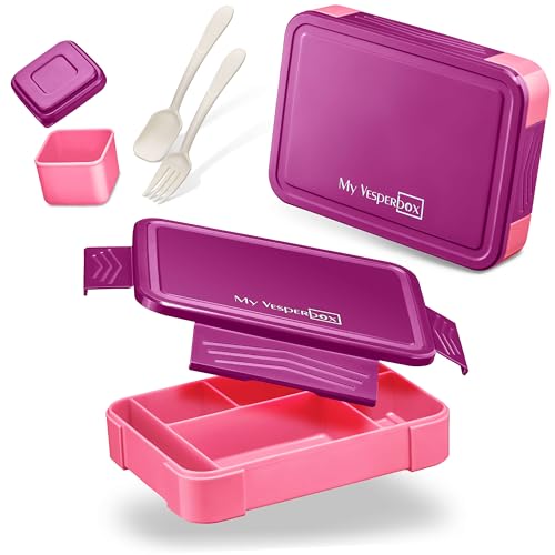 Amathley Lunchlåda Barn med Fack,Bentolåda för Barn,Matlåda för Vuxna,1300 ML Bentoboxar med 5 Fack och såsbehållare,Hållbar,Läckagesäker,Mikrovågsugnar och Diskmaskinssäker,BPA-fri (Lila)