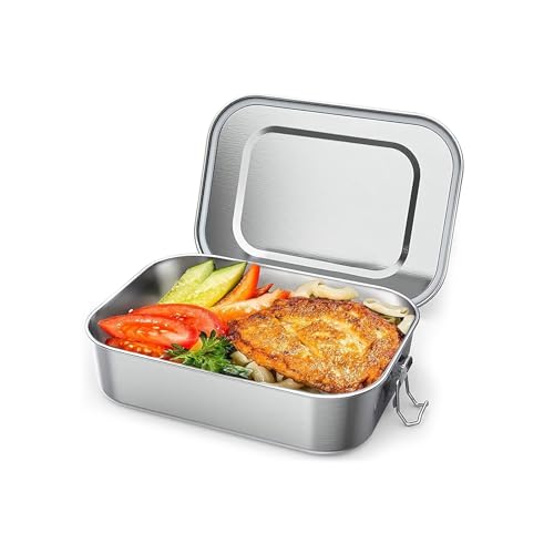 Matlåda i rostfritt stål – den hållbara Bento Box matlådan är läckagesäker, plastfri, lätt att rengöra och perfekt för resor (800ml)