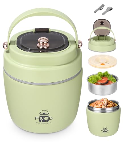 Goxiry Varm mattermos, 1 200 ml, isolerad matlåda i rostfritt stål, med sked och gaffel, isolerad skål för varm måltid, vattentät, BPA-fri, för skola, kontor, camping