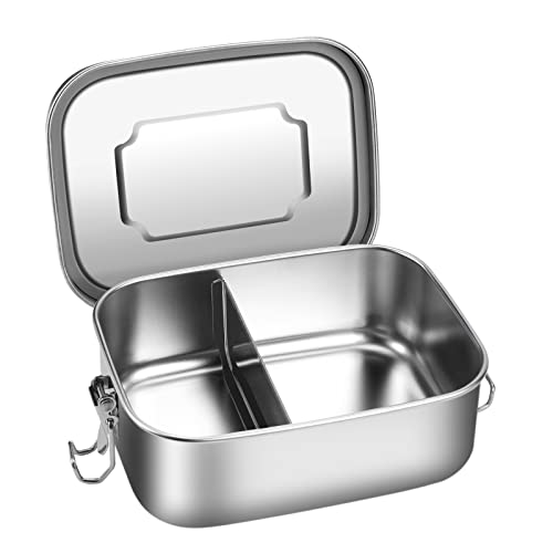 Newaner Lunchlåda i rostfritt stål, 800 ml läckagesäker matlåda med avtagbar skiljevägg, hållbar och miljövänlig matlåda, lunchlåda i rostfritt stål för barn med fack