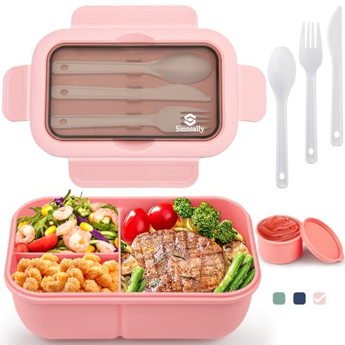 Sinnsally Lunchlåda med fack, 1 250 ml lunchlåda Bentolåda för vuxna, lunchlåda barn med bestick, vesperlåda, brödlåda, läckagesäker matlåda, frukostlåda, matlåda (rosa)